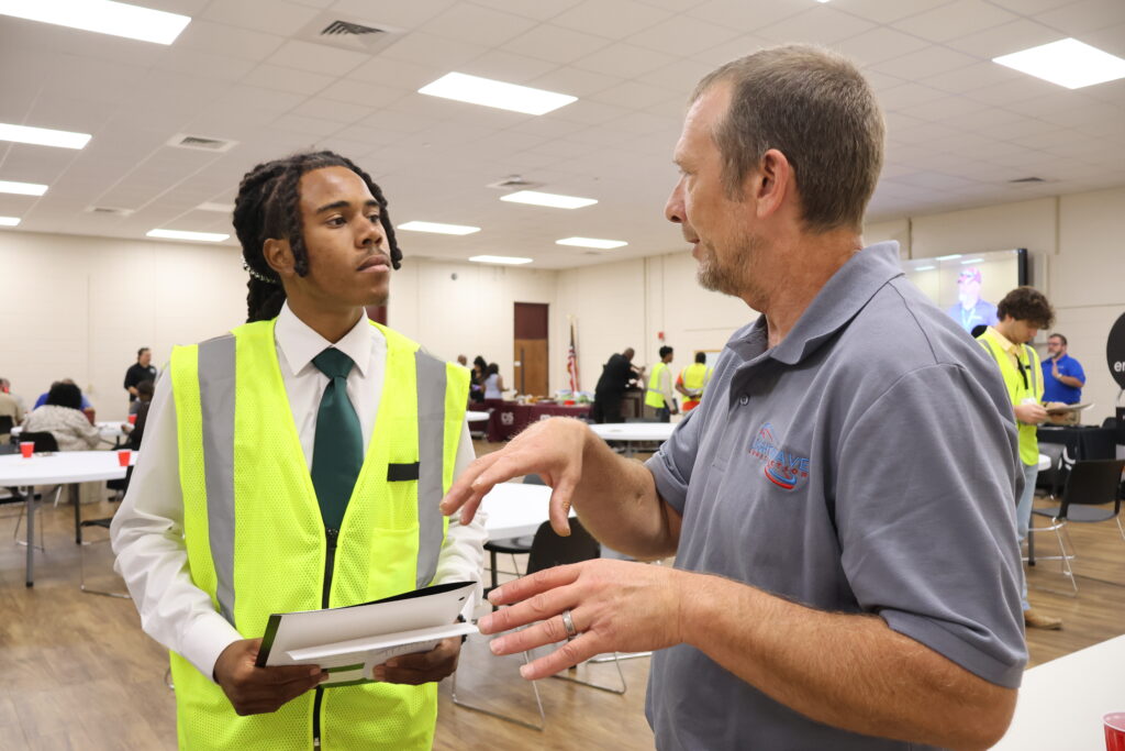 As part of graduation week, students took part in a Career Networking Event that brought together 11 industry partners: Gray Construction, Entergy, Upchurch, Lightwave Construction, the Mississippi Department of Employment Security, Codaray Construction, Yates Construction, MMR Group Inc., Eaton and Nissan, along with program partner AWS. The event gave graduates the chance to connect directly with employers seeking workers in infrastructure and data center operations.