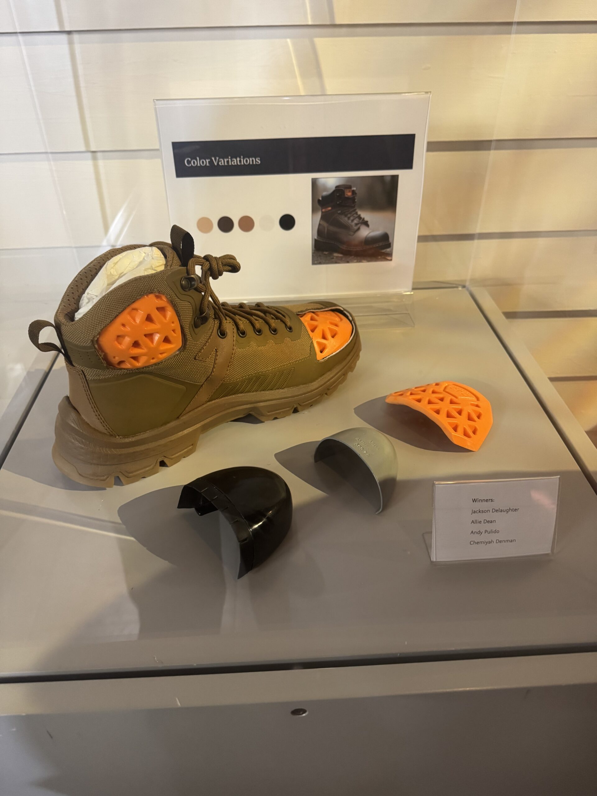 The winning design, created by four students from Northeast Lauderdale High School, reimagined traditional steel-toed boots by replacing heavy steel with a non-Newtonian material. Under normal conditions, the material behaves like a liquid but instantly hardens when subjected to strong impact. Through research and development, the team identified a non-Newtonian foam that offered the same protective benefits while being lighter and easier to integrate into the boot.
